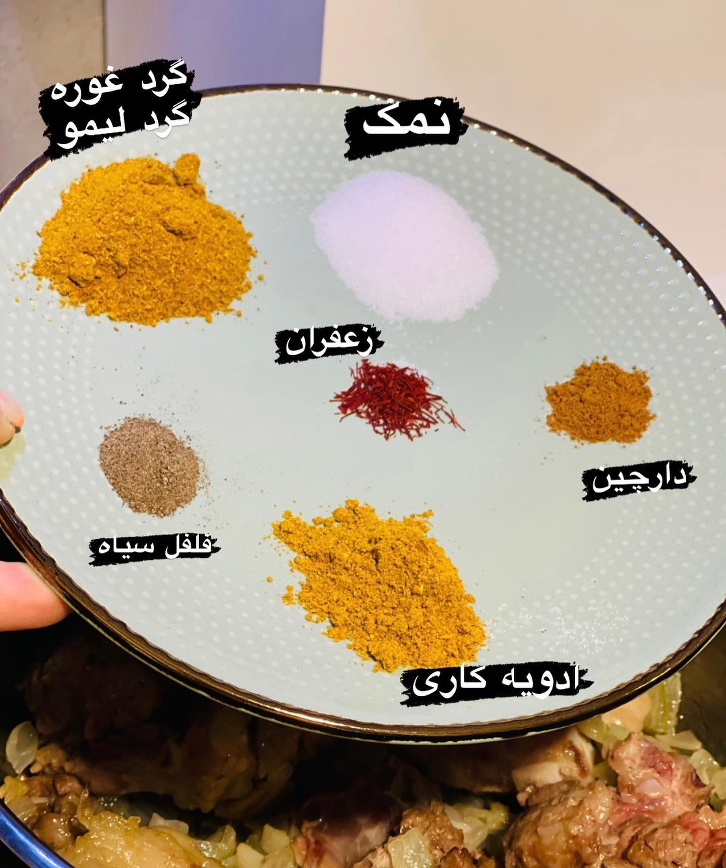 در ادامه همه ادویه های گفته شده جز نمک را به گوشت اضافه کنید و مواد را تفت دهید تا عطر ادویه ها بلند شود. روی گوشت آب جوش بریزید و بگذارید تا به جوش بیاید و بگذارید تا کاملا پخته شود. می توانید برای سریع تر شدن مراحل از زودپز استفاده کنید. گوشت را از آب گوشت جدا کنید. وقتی گوشت پخته شده به آن نمک بزنید.