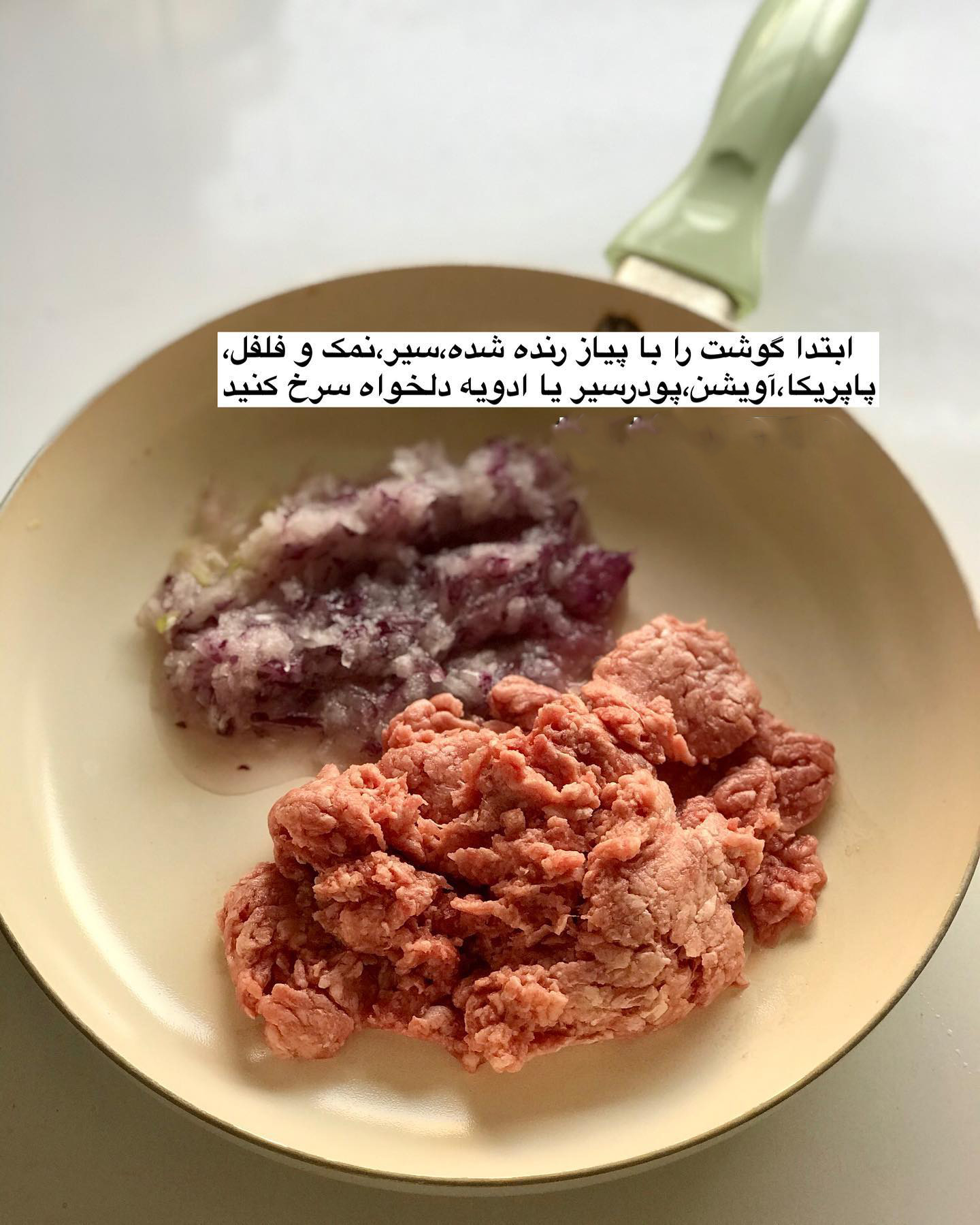 طرز تهیه لقمه گوشت چرخ کرده با سس پیاز ساده و فوری + عکس مراحل
