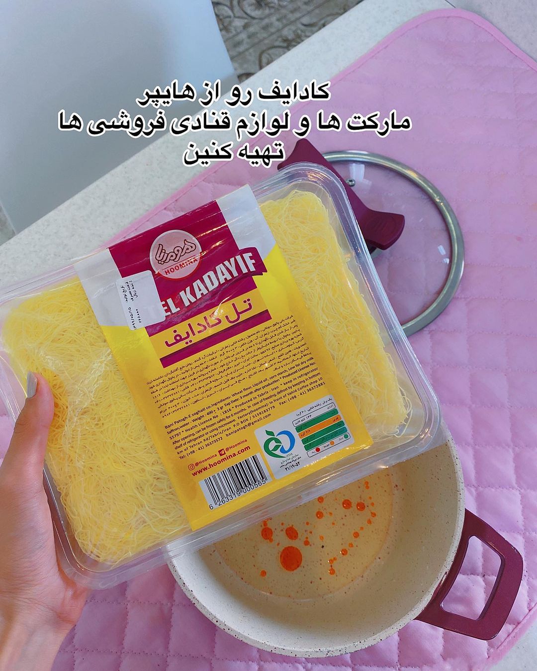 - رشته کادایف به دو صورت در بازار وجود دارد که بهتر است از نوع مرطوب استفاده کنید.