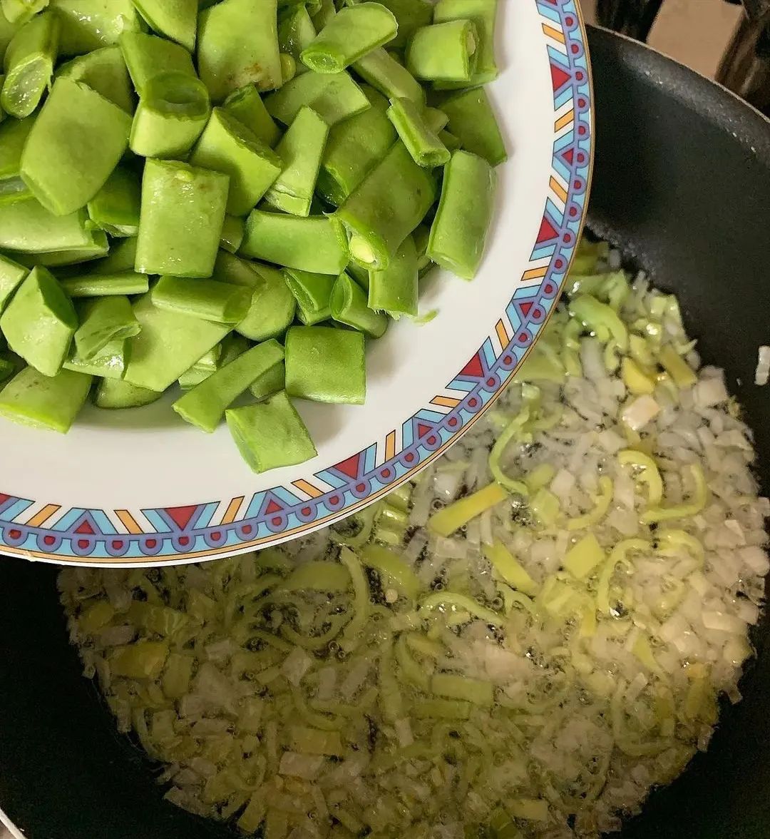 در ادامه باید مقاری آب داغ روی آن بریزید به اندازه ی که یک بند انگشت روی آب روی مواد باید و لوبیا سبز پخته شود. می توانید از لوبیا سبز بخارپز شده استفاده کنید و بجای آب داغ از عصاره مرغ یا گوشت استفاده کنید تا پلو طعم بهتری داشته باشد.