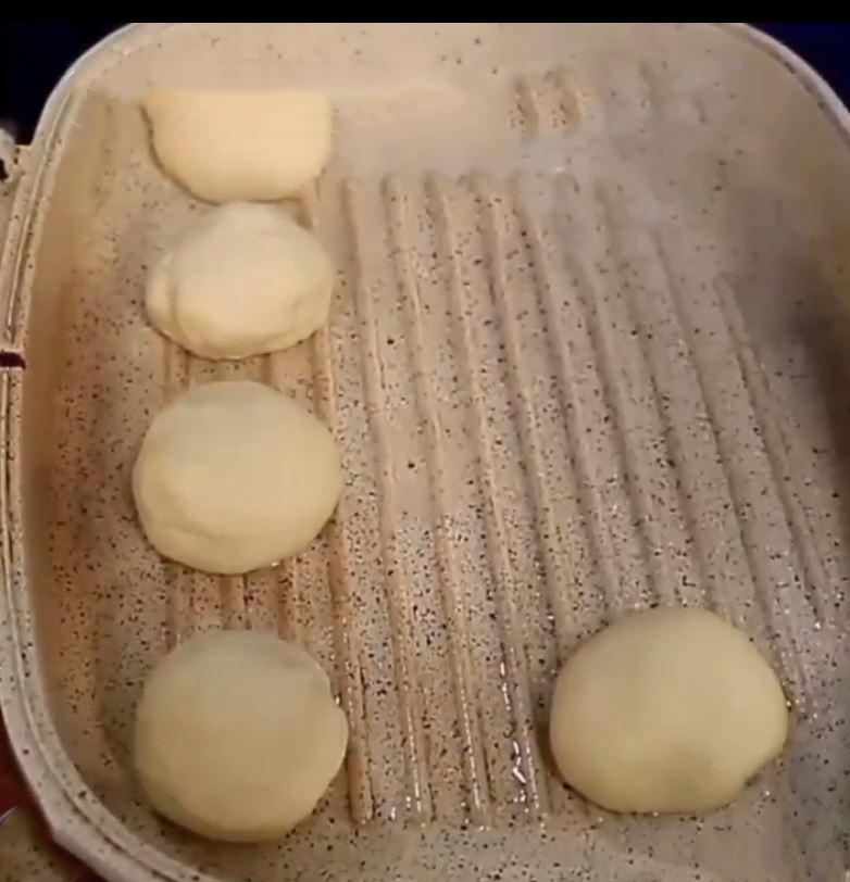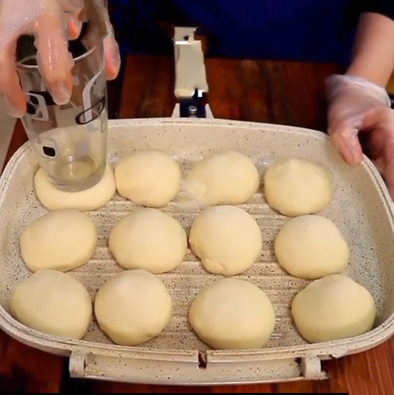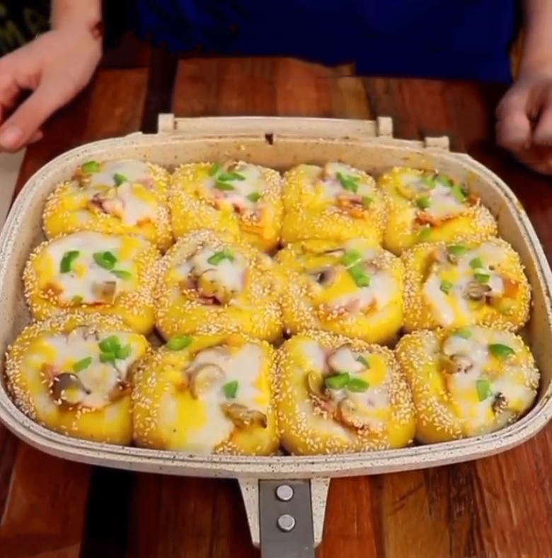 بعد از ۲ ساعت پف خمیر را با دست بگیرید و خمیر را به ۱۲ قسمت مساوی تقسیم کنید و چانه بگیرد. کف تابه دو طرفه را چرب کنید و چانه های گرد شده را داخل تابه قرار دهید و برای ۲۰ دقیقه زمان دهید تا مجدد پف کند و بعد با کف لیوان وسط خمیر را گود کنید داخل آن سس بریزید و از مواد میانی داخل آن بریزید و روی مینی پیتزا ها را با پنیر پیتزا کاور کنید و درب تابه را بسته و برای ۲۵ دقیقه زمان دهید تا پیتزا پخته شود. نوش جان