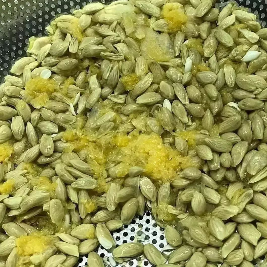 ابتدا باید هسته نارنج را از خود نارنج جدا کنید و بشورید و در آب بریزید و برای ۴۸ ساعت زمان دهید تا داخل آب خیس بخورد در این مدت مداوم آب آن را تعویض کنید تا لعاب هسته ها از بین برود و تمیز شوید.
