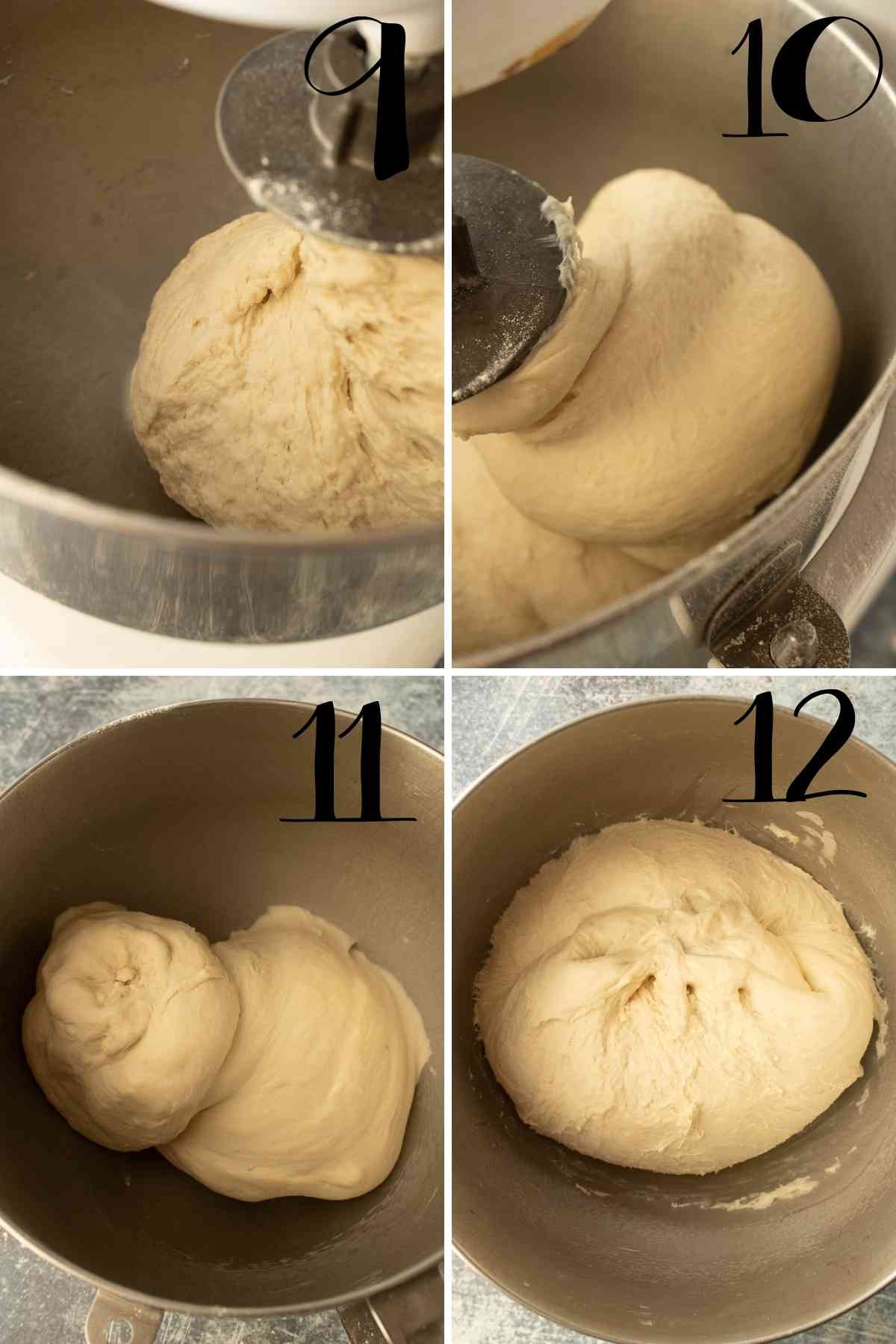 مخمر و شکر و نمک را داخل آرد الک شده ریخته و هم زده و آب ولرم را کم کم اضافه کرده و هم بزنید تا جایی که خمیر نرم و لطیفی شود و ده دقیقه با دست ورز داده و یا می توانید داخل استند میکسر برای دقیقه خمیر را ورز دهید و سپس خمیر را به شکل یک توپ در بیاورید و داخل کاسه ی چرب کرده قرار داده و رویش را بپوشانید تا به مدت نیم ساعت استراحت کند، در این رسپی از مخمر فوری استفاده شده است که مستقیم با مواد مخلوط می شود اگر در دسترس ندارید می توانید ابتدا خمیر مایه را عمل بیاورید و بعد به مواد اضافه کنید.