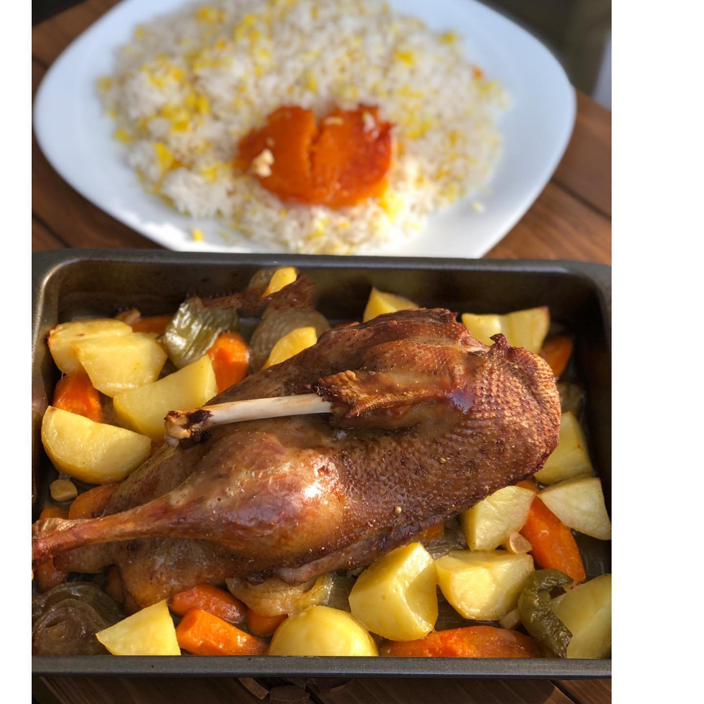 گوشت غاز به نسبت گوشت مرغ و یا گوساله و گوسفند از پروتئین بیشتری برخوردار است و طبع ملایمی دارد و پس از پخت،گوشتی با طعم شیرین و آبدار است و هر غاز به نسبت اندازه و جثه ای که دارد برای ۵ تا ۱۱ نفر کافی می باشد و ما در این غذا از نیمی از یک عدد غاز استفاده کردیم، گوشت غاز چرب است و نیازی به افزودن کره یا روغن در پخت غذا نیست، گوشت غاز سیستم ایمنی بدن را بالا می برد و برای افرادی که دچار بیماری کرونا یا آنفولانزا شده اند ،مناسب می باشد. شما این غذای خوشمزه را در فر به همراه سبزیجات تهیه کنید و در کنار یک پلو خوشمزه سرو کنید. امروز در پارسی دی طرز تهیه خوراک غاز را به شما آموزش خواهیم داد همراه ما باشید.