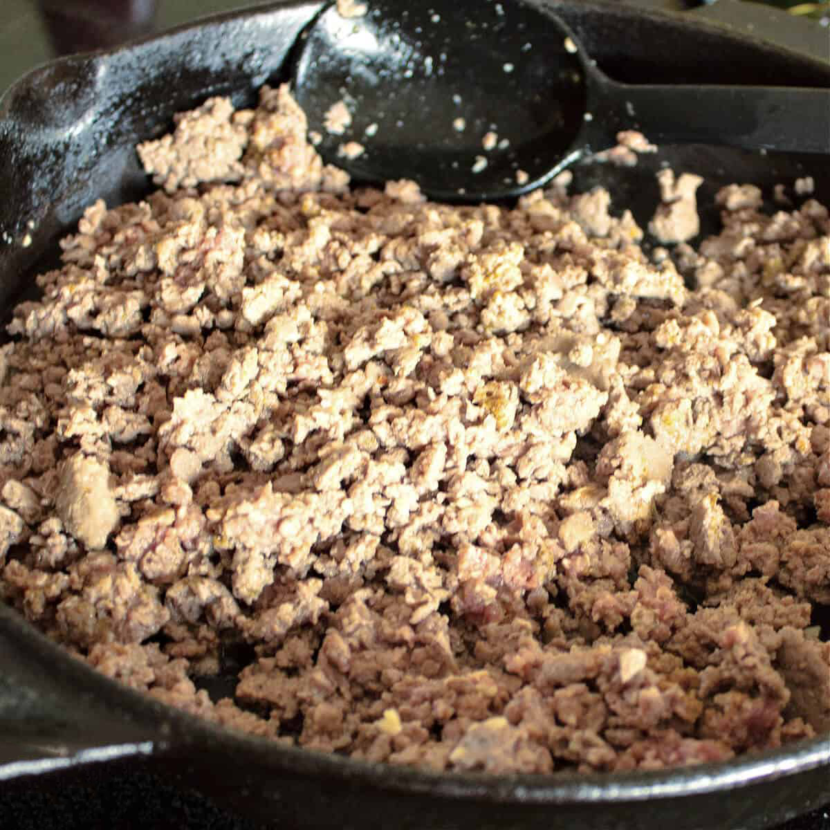 در ادامه باید گوشت چرخ کرده را به همراه سیر رنده شده و ادویه ها گفته شده و کمی روغن داخل تابه بریزید و خوب تفت دهید تا گوشت خوب پخته و تغییر رنگ دهید، می توانید از روغن کنجد یا زیتون سرخ شدنی استفاده کنید تا کالری کمی داشته باشید. سپس فلفل دلمه ای یا فلفل پاپریکا را نیز اضافه کنید و تفت دهید تا مواد یکدست شود.