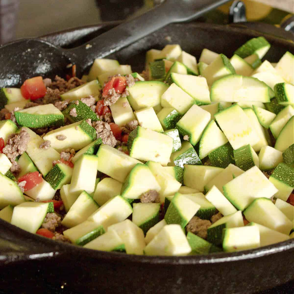 در ادامه باید کدو سبز را نیز به مواد اضافه کنید و هم بزنید و برای ۱۰ دقیقه روی درب تابه را قرار دهید تا کدو پخته شود و بعد به همراه نان سرو کنید. نوش جان