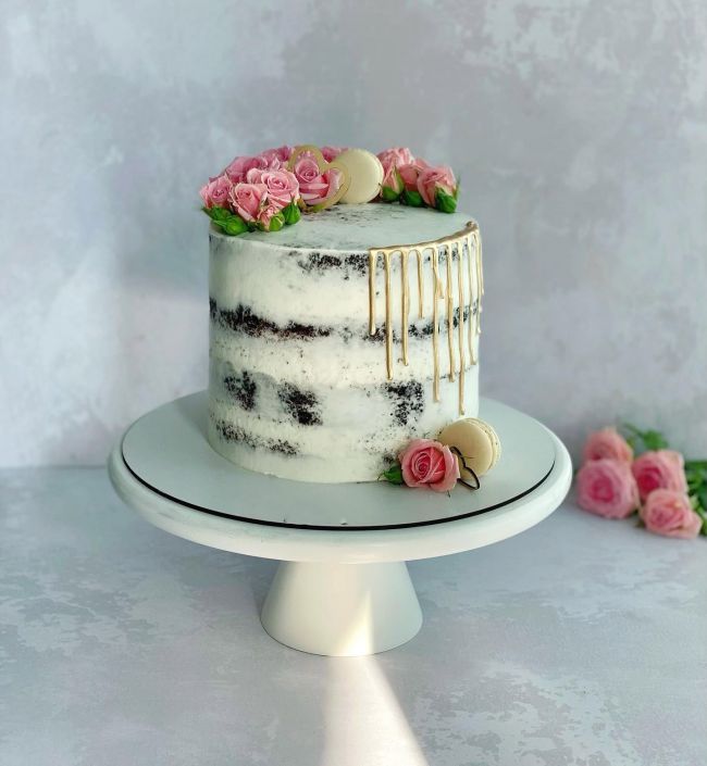 - ایده تزیین کیک با گل طبیعی