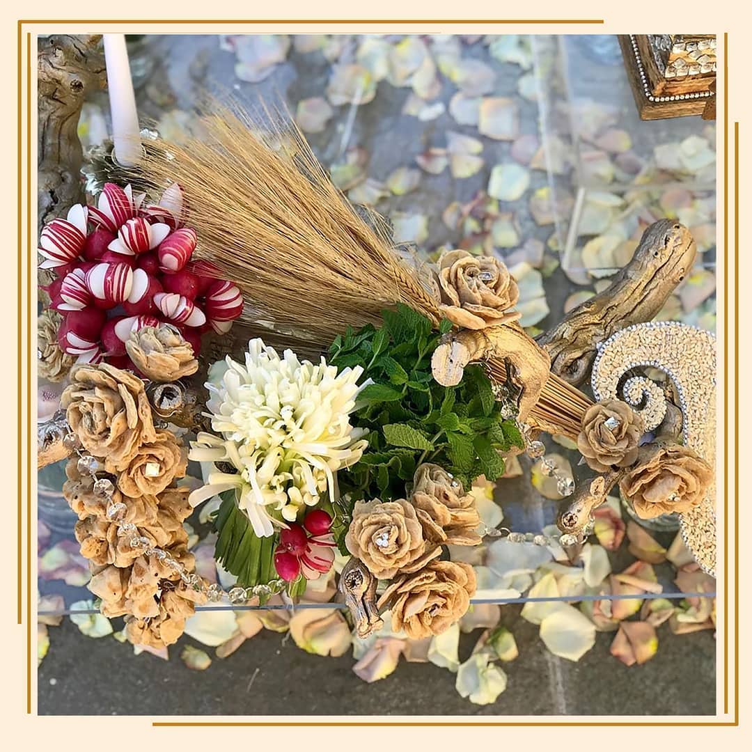 - سبزی: که معمولا شامل ریحان، تره، نعنا و دیگر سبزیجات تازه است، نماد سلامتی، طراوت و شادابی است و به معنای زندگی طولانی و باطراوت برای زوجین تعبیر می شود.