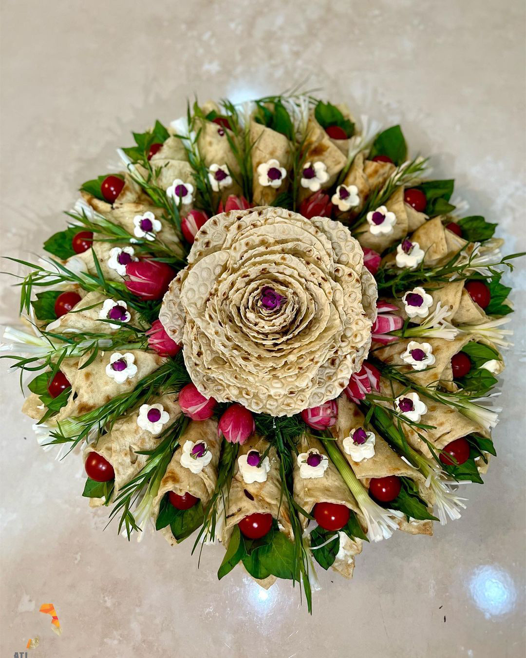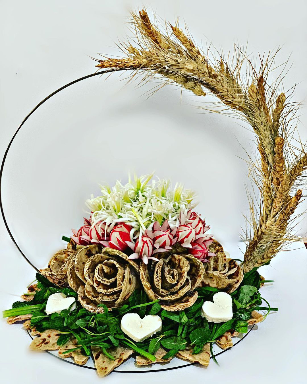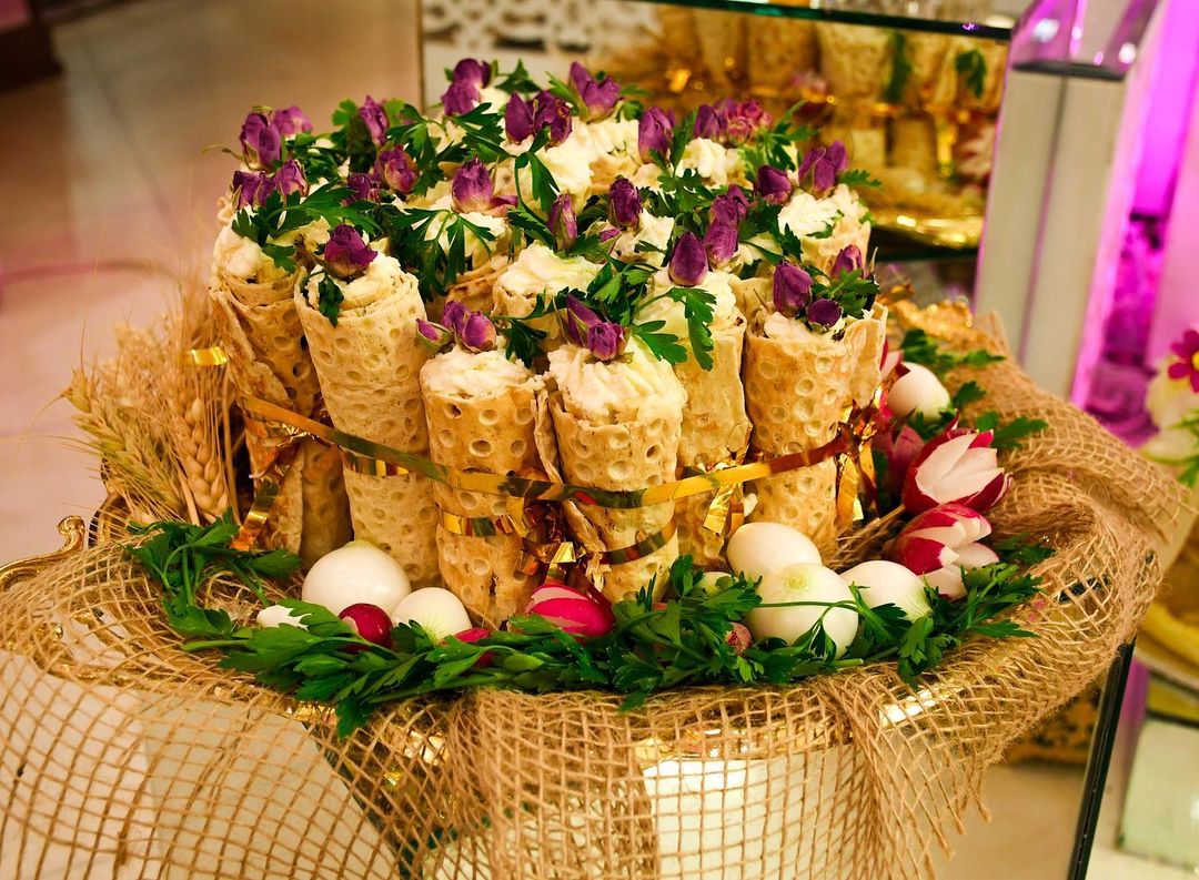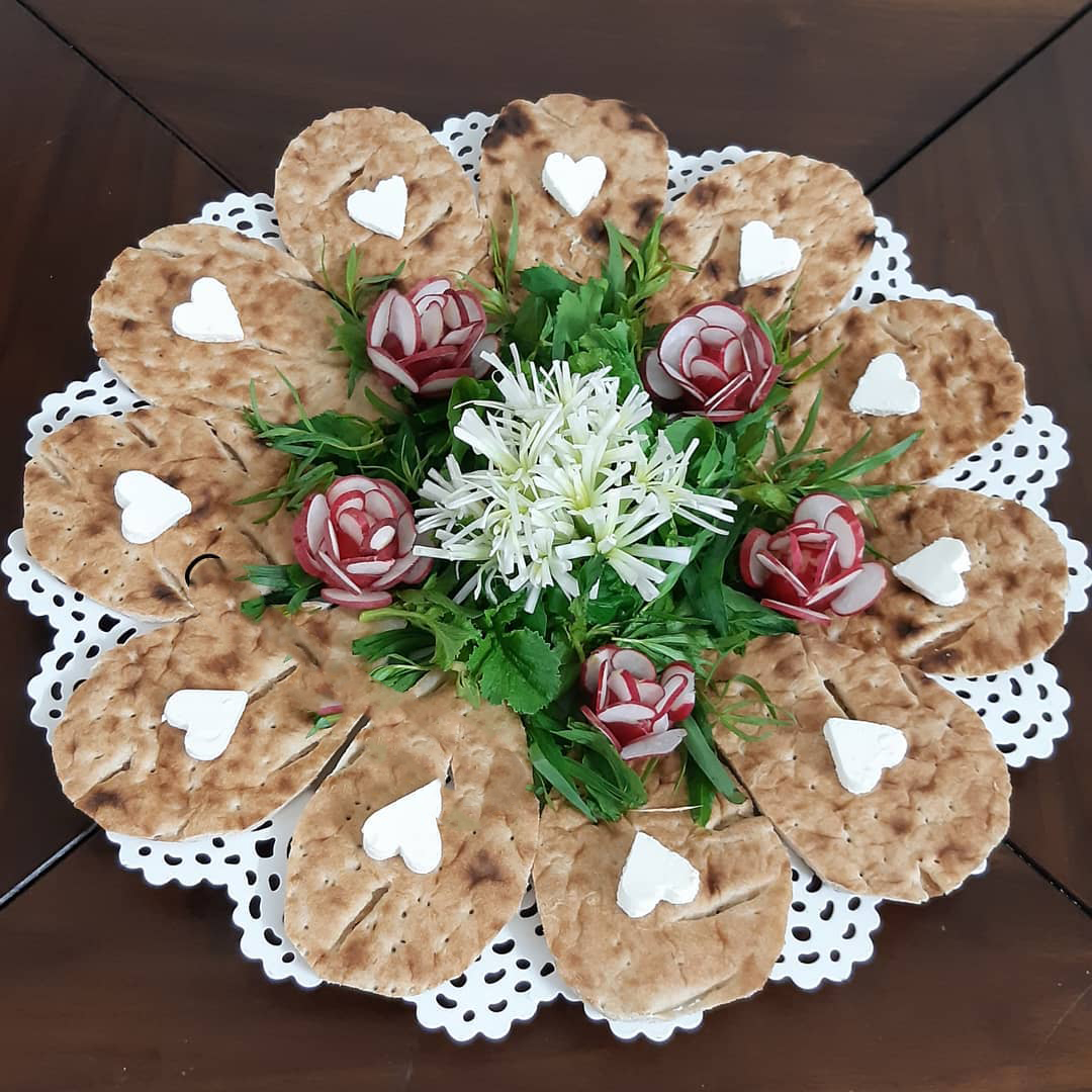 تزیین نون پنیر سبزی عروس برای سفره عقد با نان لواش و سنگک
