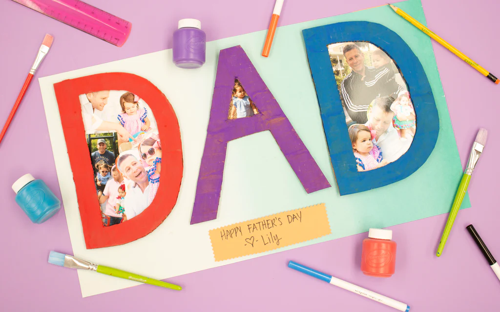 - ساخت یک قاب عکس مقوایی با پیام های عاشقانه یا جملات زیبا برای پدر.