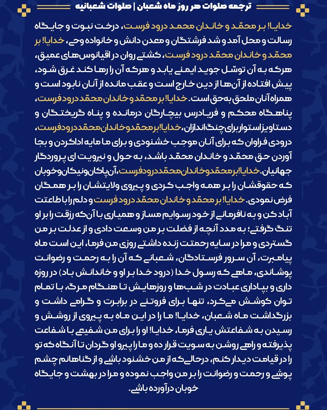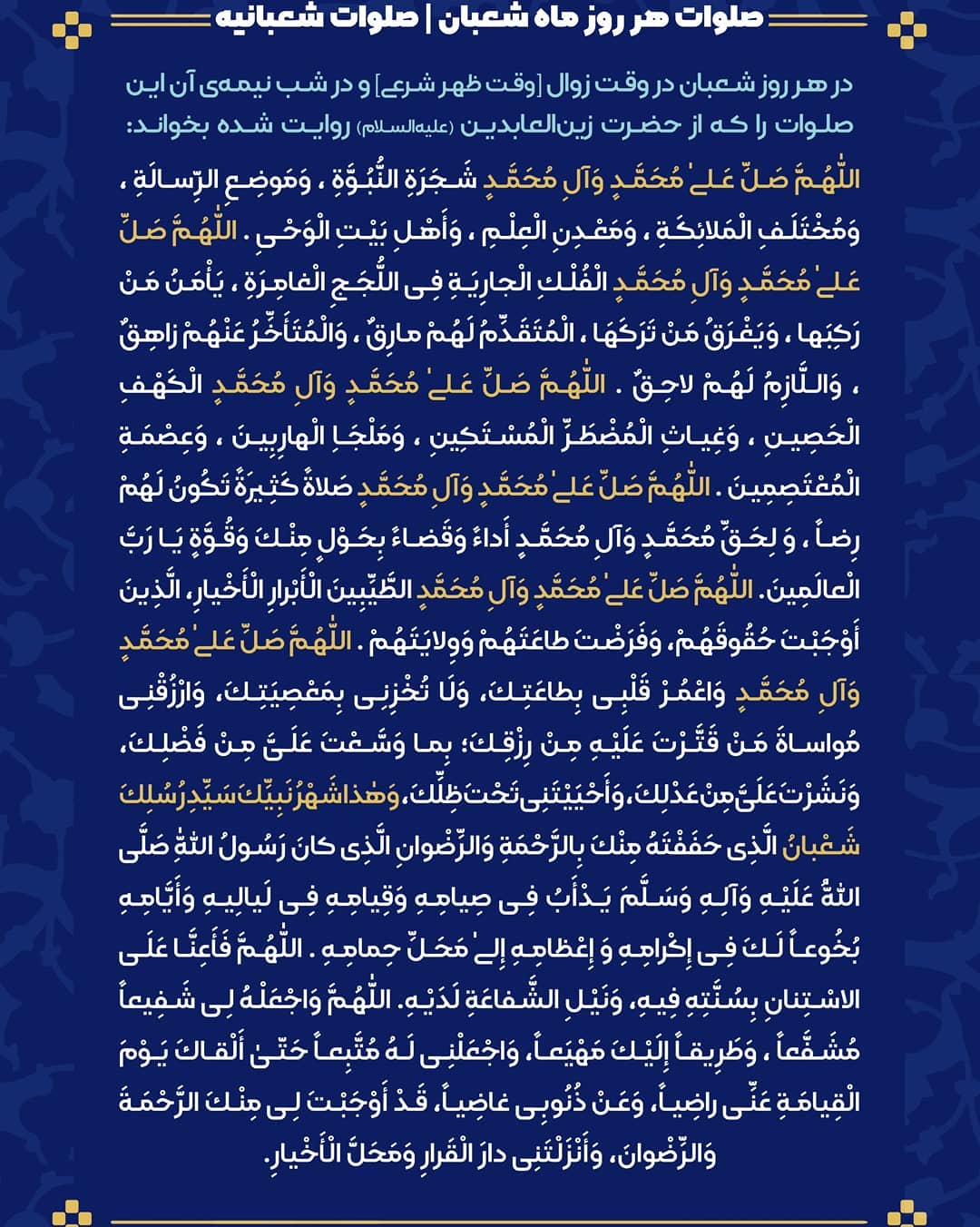 متن کامل صلوات شعبانیه با ترجمه فارسی