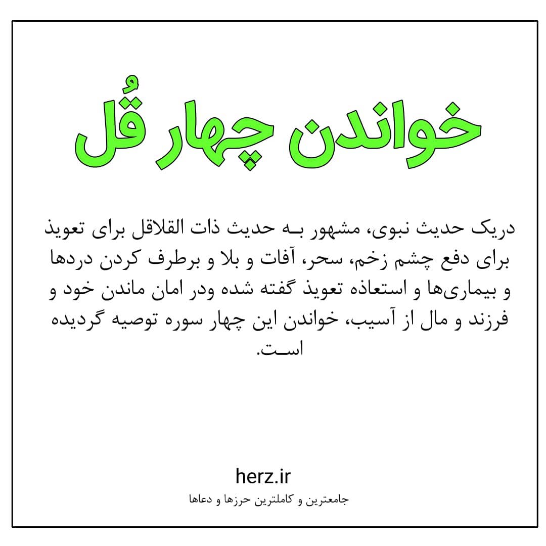 چهار قل مجموعه ای از سوره های پرمحتوا و کوتاه هستند که نقش مهمی در محافظت روحی و جسمی دارند. خواندن مداوم این سوره ها توصیه شده است، زیرا می تواند باعث دوری از شر و جذب خیرات شود. با تکرار این آیات، آرامش، امنیت و حفاظت الهی را در زندگی خود احساس خواهیم کرد.