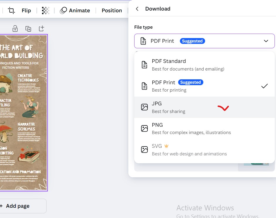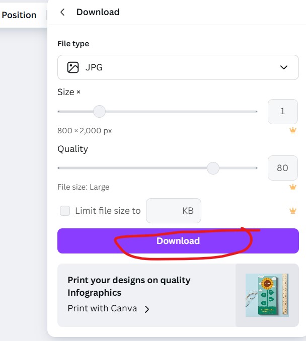 نام فایل اینفوگرافیک را با کلمه کلیدی ذخیره کنید (مثلاً: infographic-canva.png).