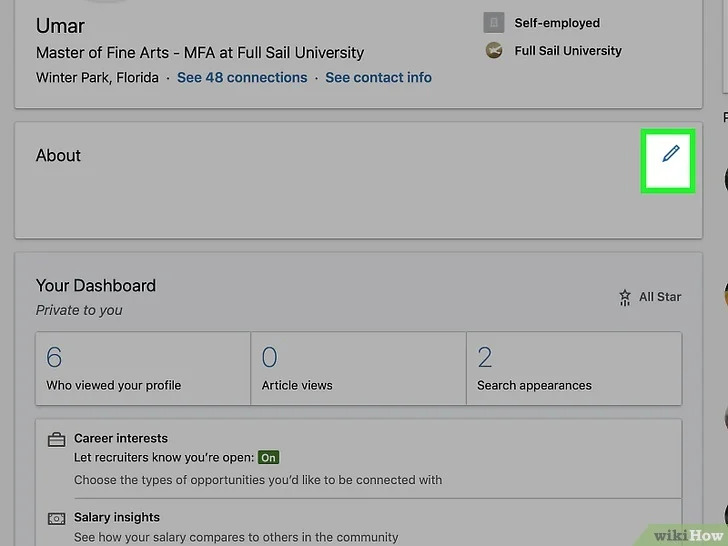- فعال کردن گزینه “Open to Work” برای نمایش جستجوی کار به کارفرمایان.