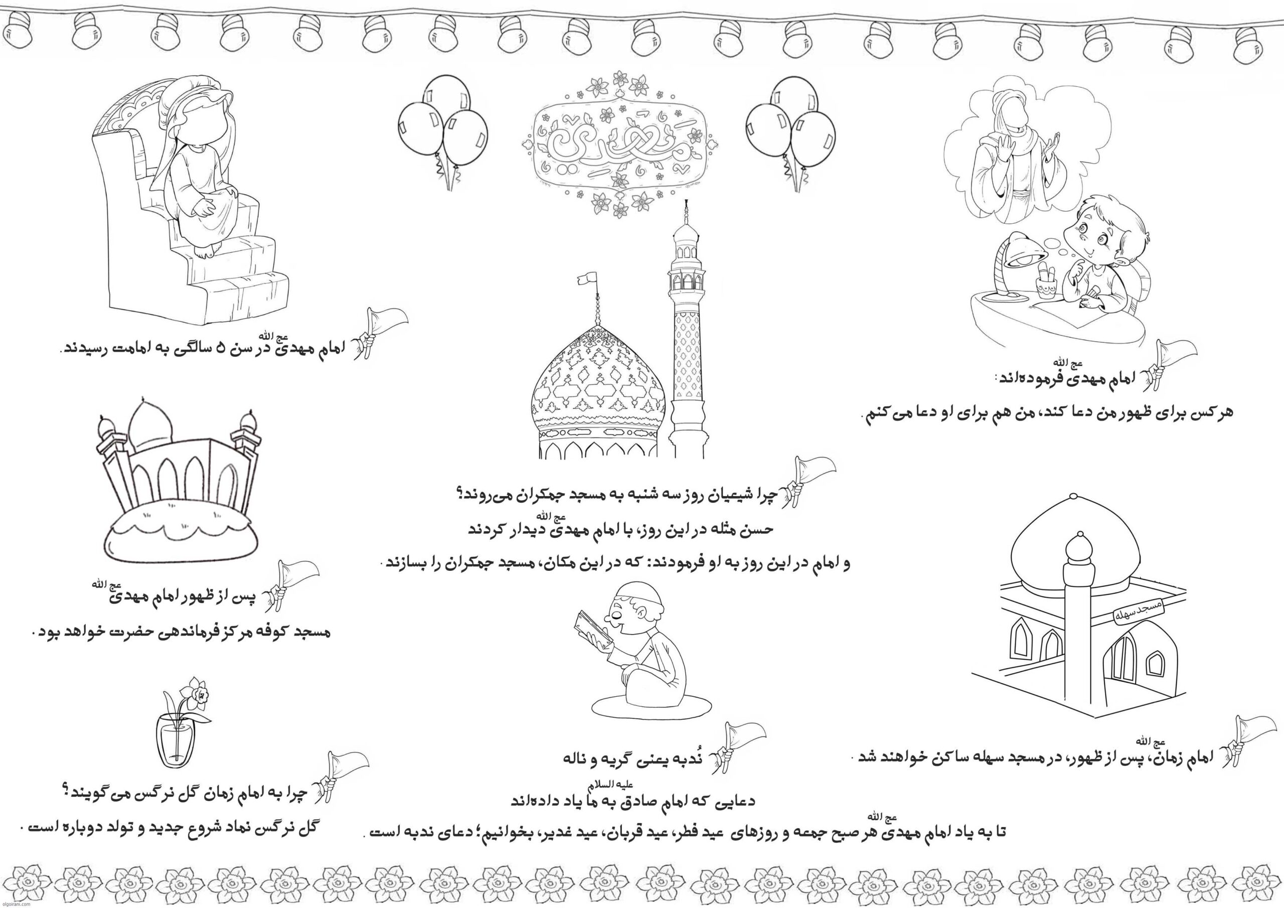 نیمه شعبان، سالروز ولادت حضرت مهدی (عج)، یکی از بزرگ ترین اعیاد مسلمانان است که با جشن و شادی همراه است. یکی از فعالیت های محبوب در این روز برای کودکان، رنگ آمیزی تصاویر مرتبط با این مناسبت است. کاربرگ ه ای رنگ آمیزی نیمه شعبان نه تنها جنبه سرگرمی دارند، بلکه به آموزش مفاهیم دینی و آشنایی بیشتر کودکان با امام زمان (عج) نیز کمک می کنند.