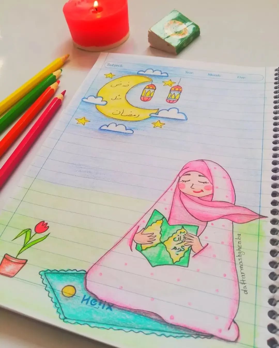 نقاشی ماه رمضان کودکانه شب قدر