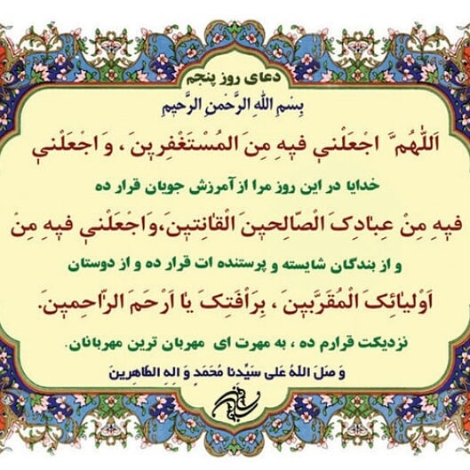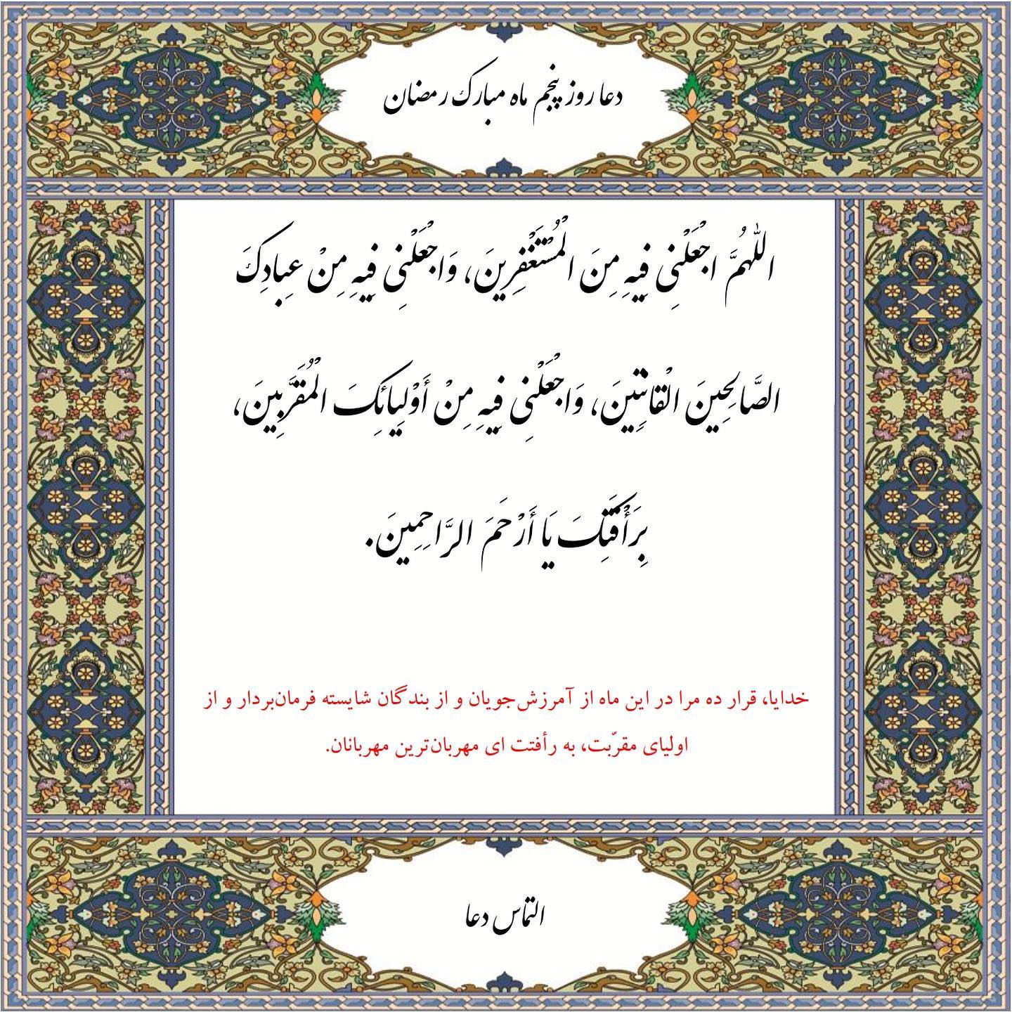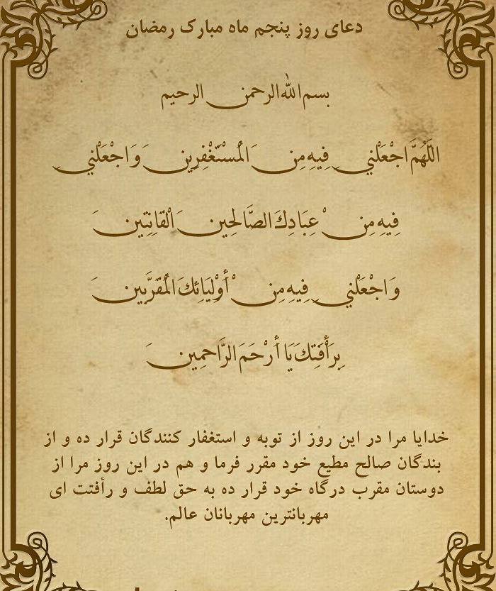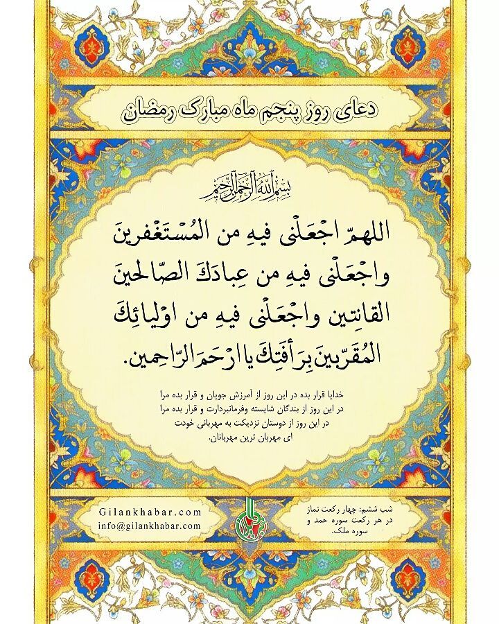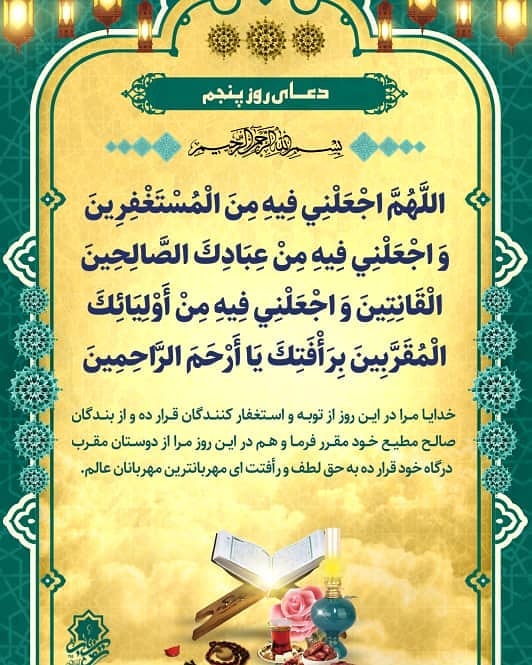 همچنین ببینید: دعای هر روز ماه رمضان با متن عربی و ترجمه فارسی