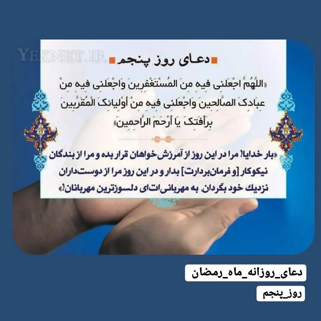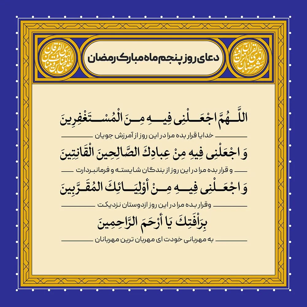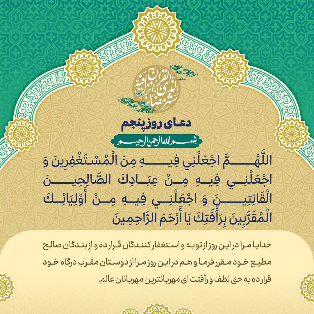 ماه مبارک رمضان، ماه رحمت و مغفرت الهی است و هر روز آن با دعای مخصوصی همراه است که فضیلت خاص خود را دارد. دعای روز پنجم ماه رمضان یکی از این دعا هاست که با مضامین عمیق معنوی، از خداوند طلب آمرزش، صلاح و قرب می کند. در این مقاله، متن دعای روز پنجم را همراه با عکس مناسب برای استوری، فایل صوتی با صدای دل نشین سید قاسم موسوی قهار و شرحی کوتاه از این دعا ارائه می دهیم تا شما بتوانید از این محتوا در فضای مجازی یا برای بهره مندی معنوی استفاده کنید.