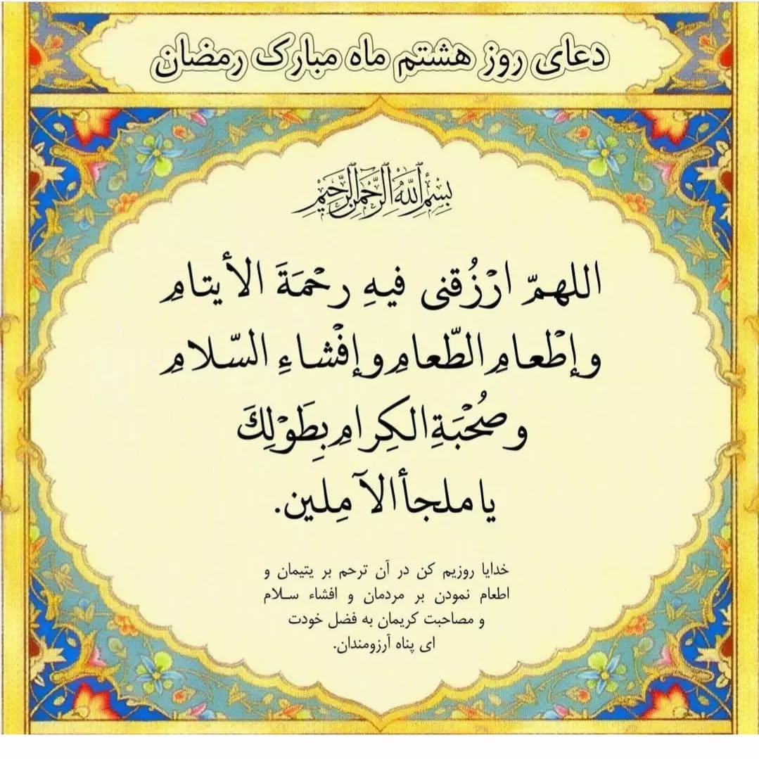 متن دعای روز هشتم ماه رمضان