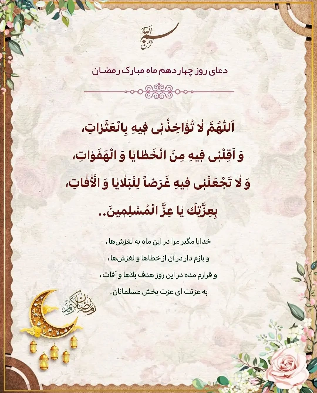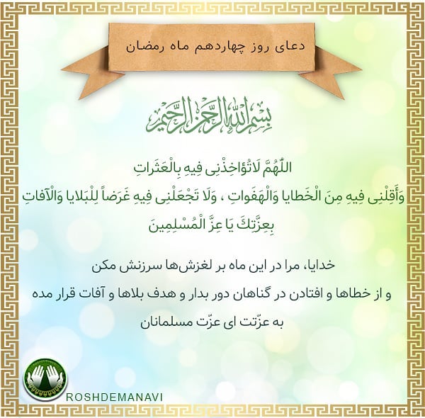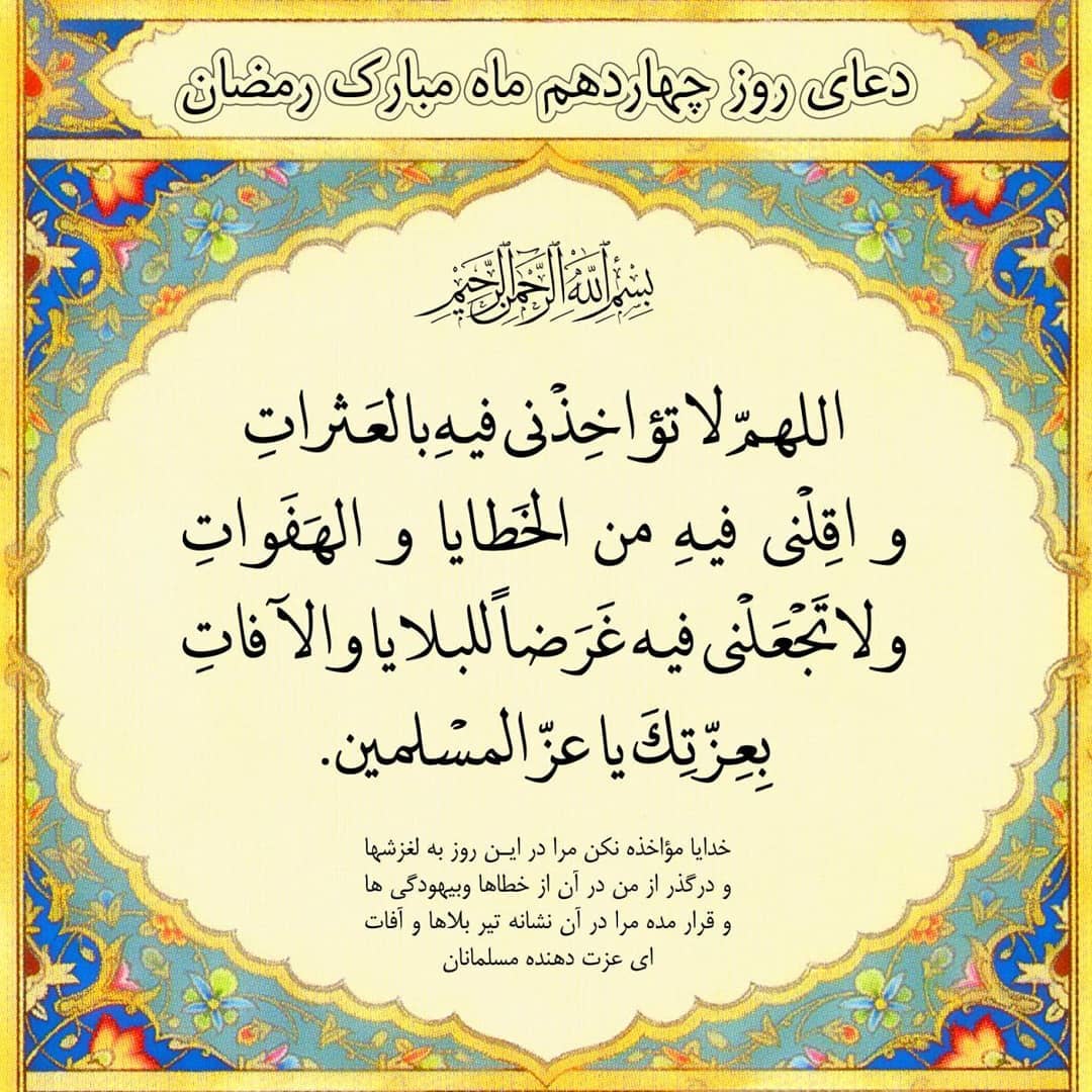 متن دعای روز چهاردهم ماه رمضان