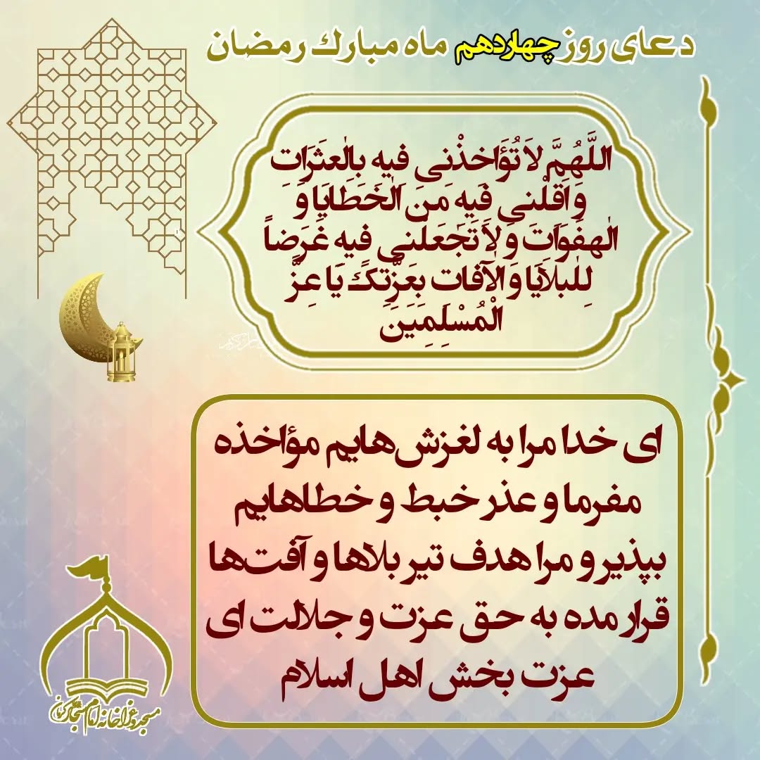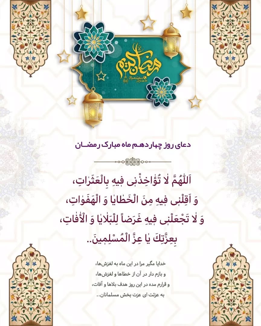 دعای روز چهاردهم ماه رمضان عکس