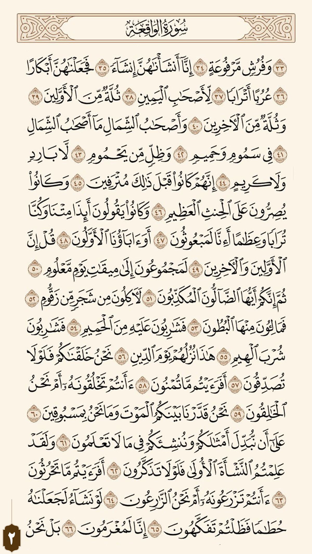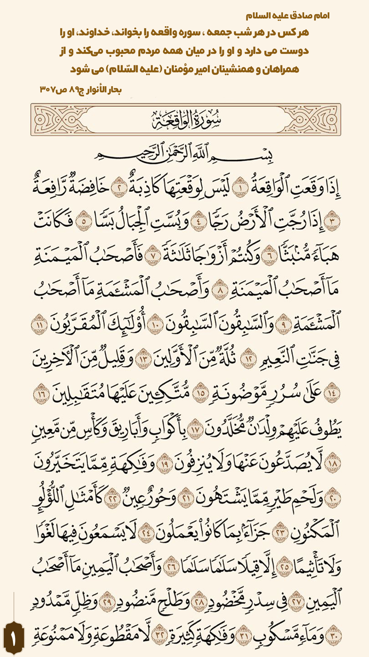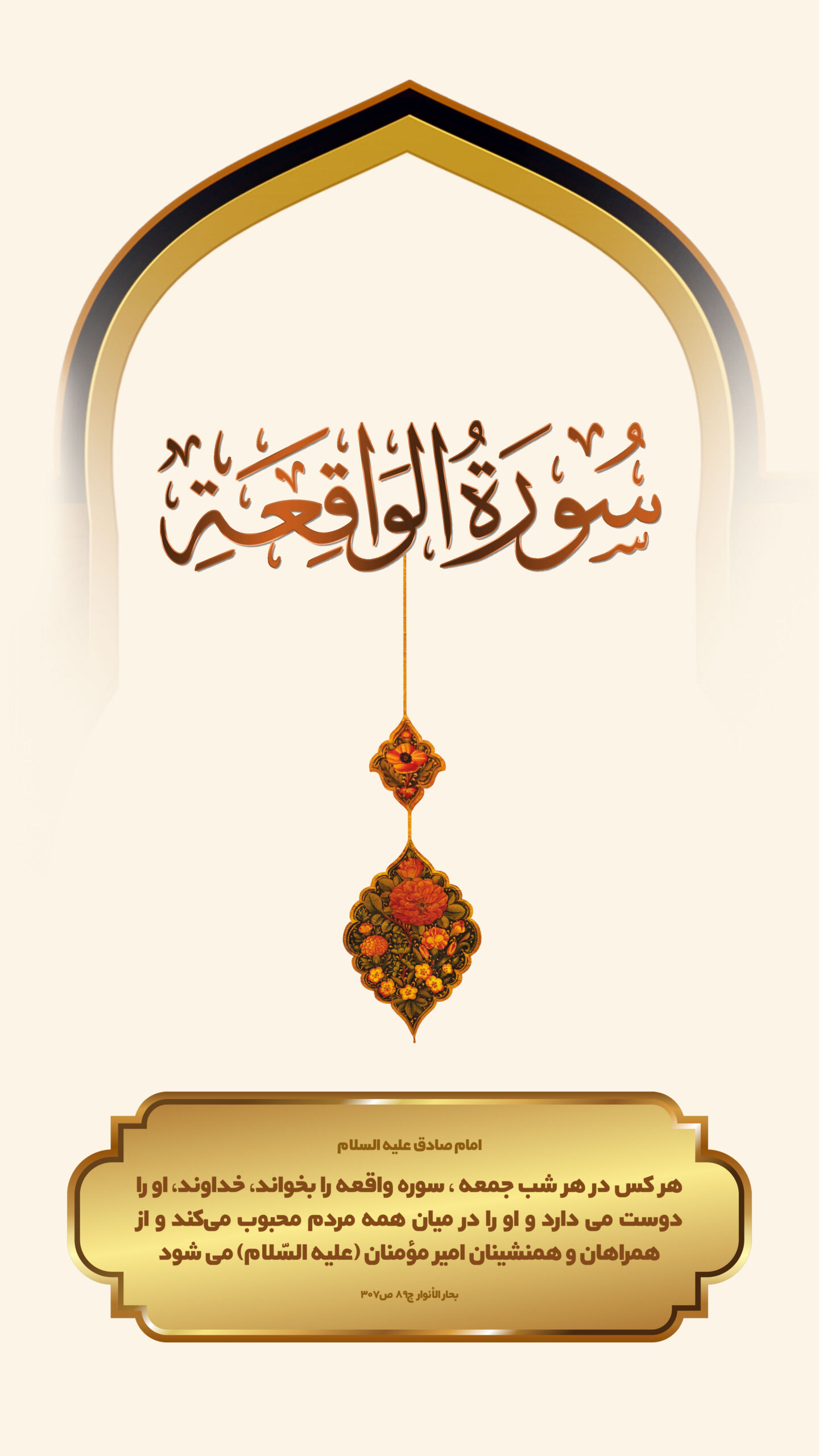 امام صادق (ع) فرمودند: «هرکس مشتاق بهشت باشد، سوره واقعه را بخواند.»