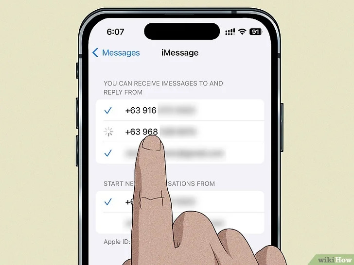 به Settings > Messages > Send & Receive بروید و بررسی کنید که شماره تلفن و ایمیل اپل آیدی شما انتخاب شده باشند.