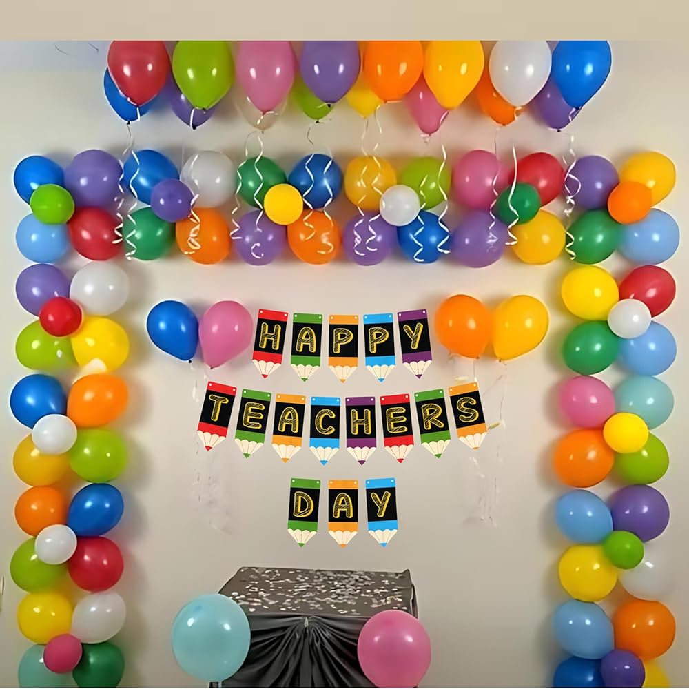 تزیین کلاس برای روز معلم با بادکنک و کاغذ رنگی