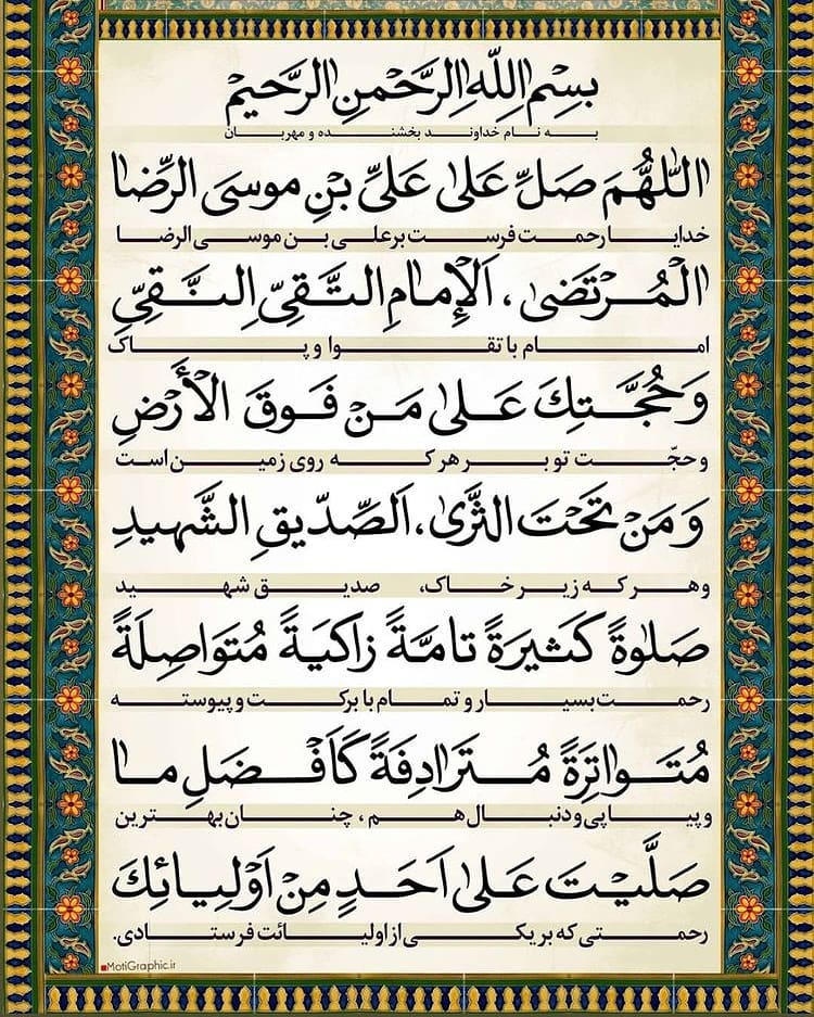 اللَّهُمَّ صَلِّ عَلَى عَلِیِّ بْنِ مُوسَى الرِّضَا الْمُرْتَضَى