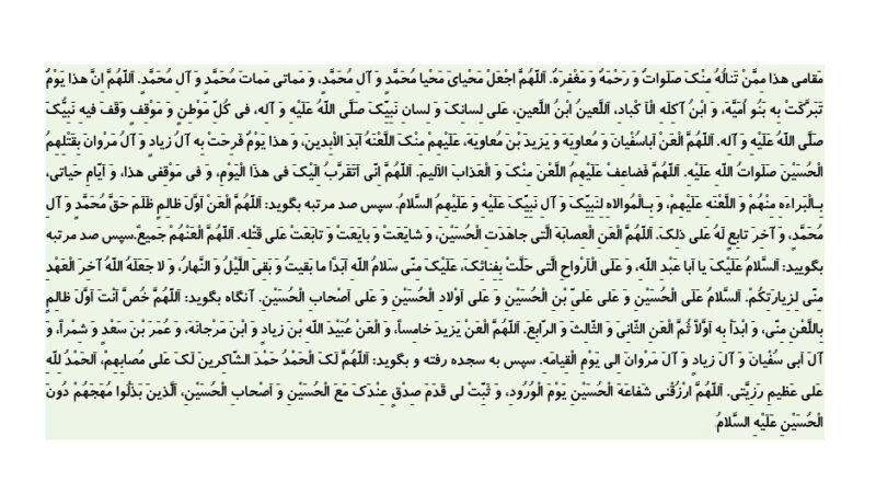 اَللّهُمَّ الْعَنِ الْعِصابَهَ الَّتی (الَّذِینَ)جاهَدَتِ الْحُسَیْنَ وَ شایَعَتْ وَ بایَعَتْ وَ تابَعَتْ (تَایَعَتْ)عَلی قَتْلِهِ اَللّهُمَّ الْعَنْهُمْ جَمیعاً