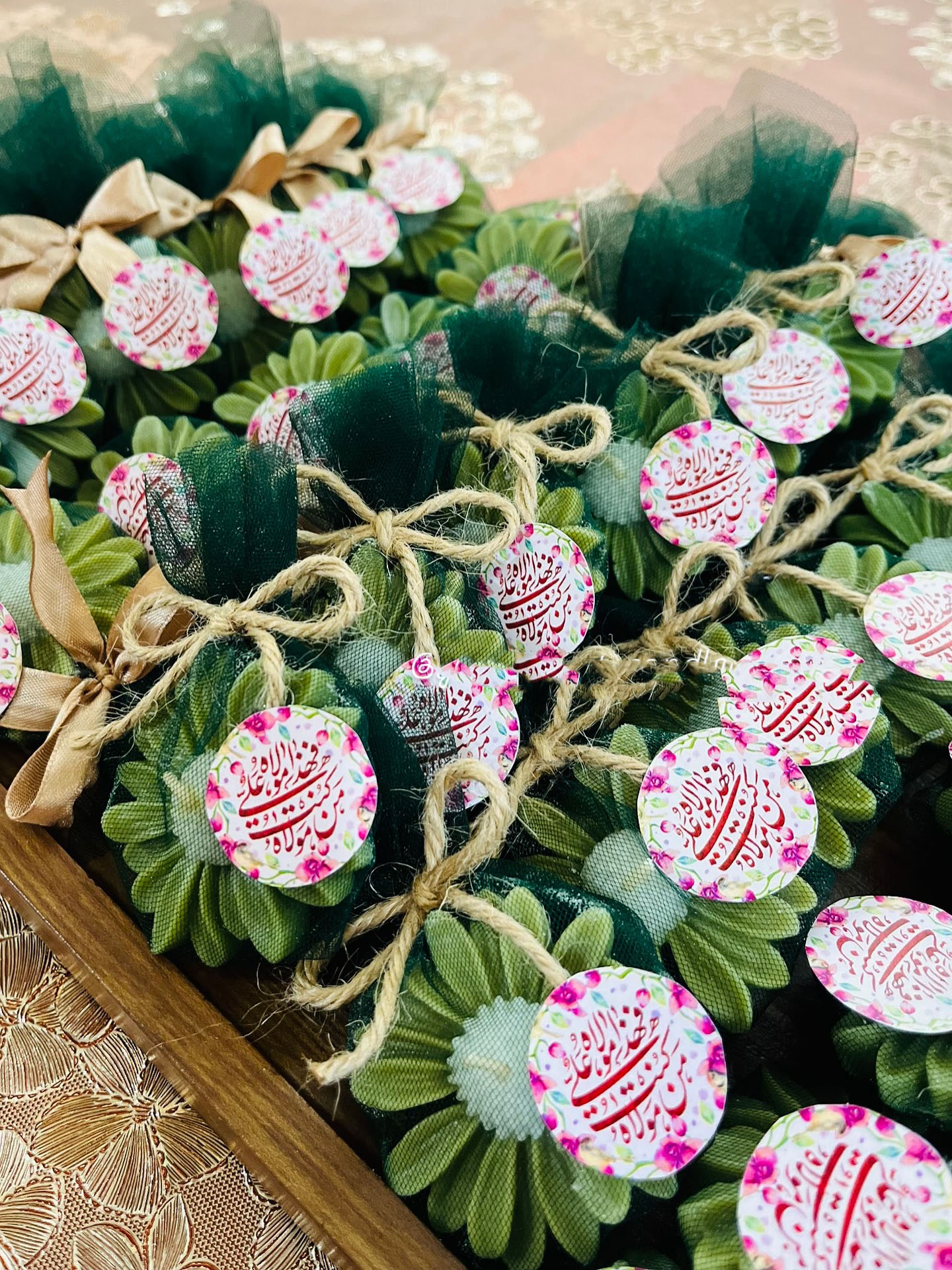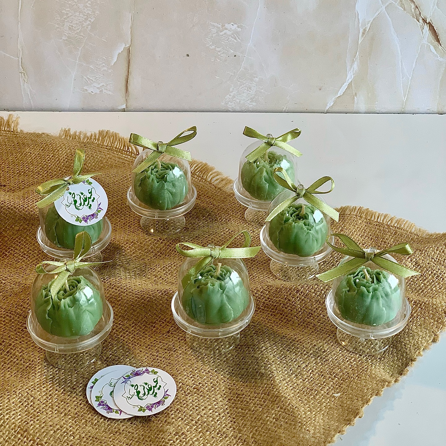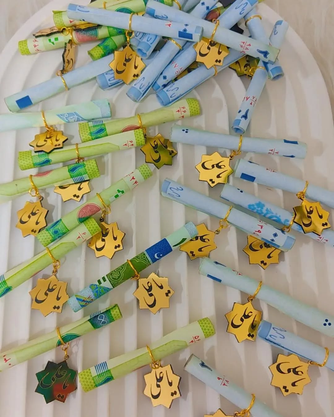 یکی از زیباترین ایده ها، استفاده از شمع های تزئینی با طرح یا نوشته یا علی است که میتوان آن را در ظروف شیشه ای کوچک یا بسته بندی تور دار ارائه داد.