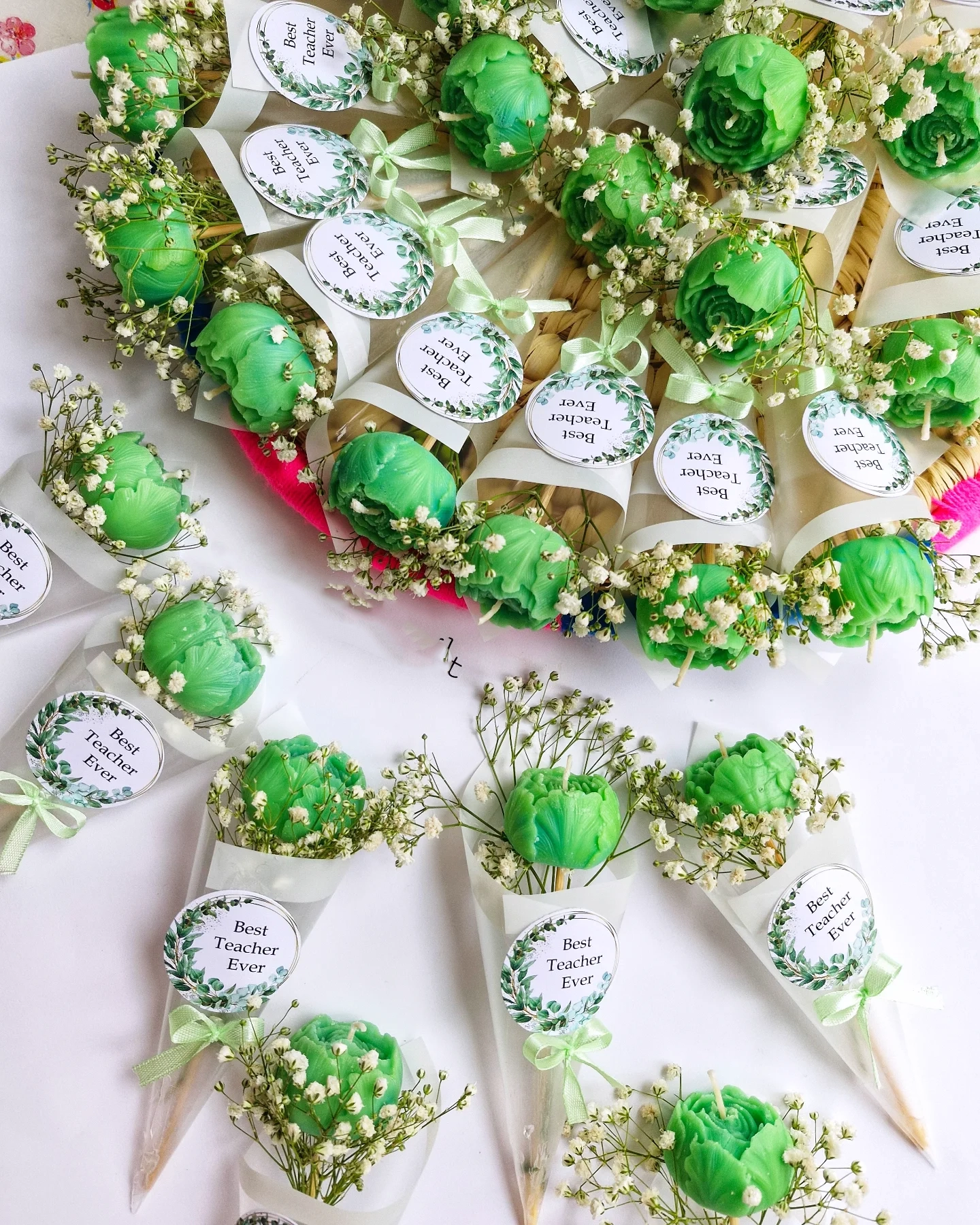 تورهای رنگی برای بسته بندی شکلات، نقل یا شمع انتخاب مناسبی هستند. می توانید تور را با روبانه ای سبز و طلایی ببندید و یک لیبل کوچک اضافه کنید.