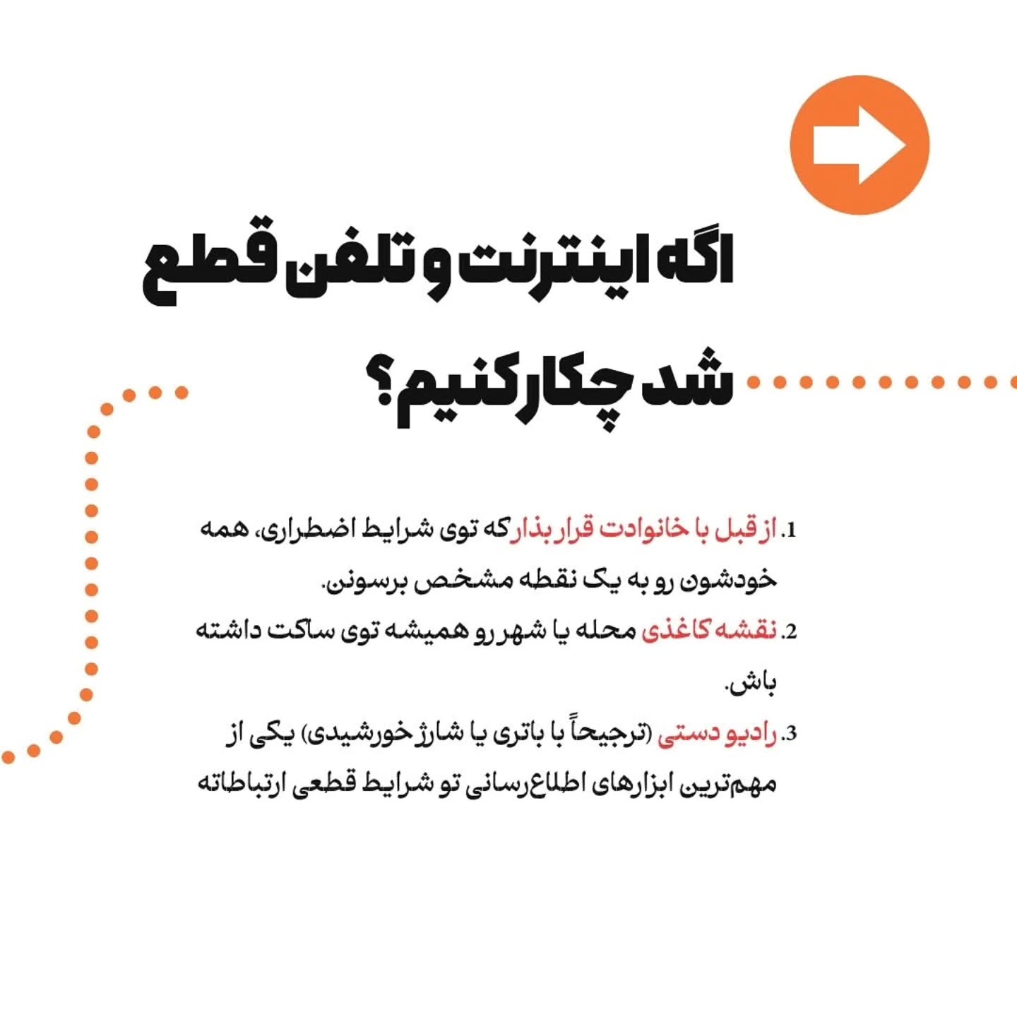 - فهرست شماره تماس های ضروری روی کاغذ