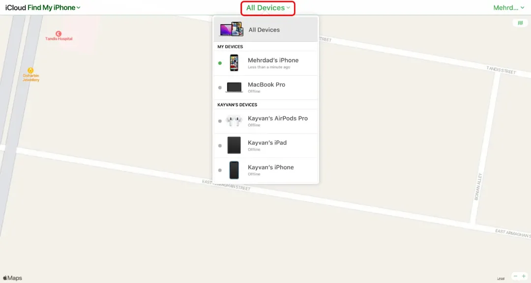 در بخش All Devices، دستگاه مورد نظر را انتخاب نمایید.